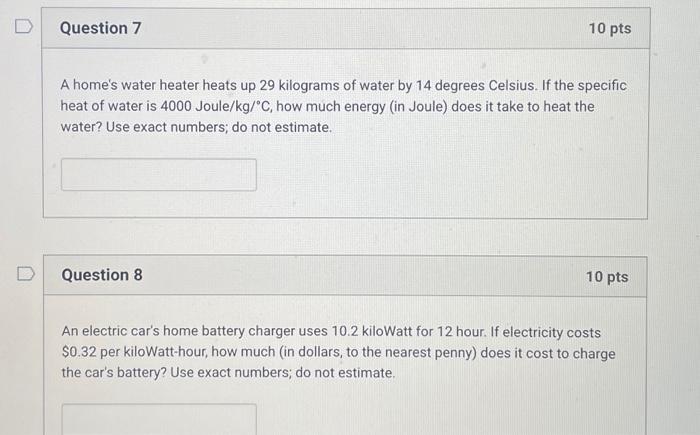 Solved D Question 7 10 Pts A Home S Water Heater Heats Up 29 Chegg Com